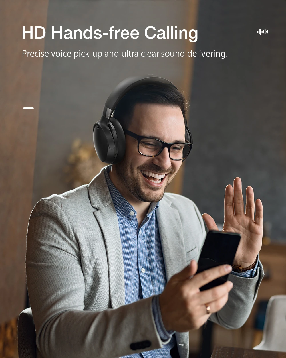 Bluetooth 5.0-Technologie und Mehrpunktverbindung ermöglichen es Ihnen, die Kopfhörer gleichzeitig mit zwei Geräten zu verbinden. Wechseln Sie nahtlos zwischen einem Film auf Ihrem Laptop und einem Anruf auf Ihrem Telefon, ohne die Geräte erneut koppeln zu müssen.