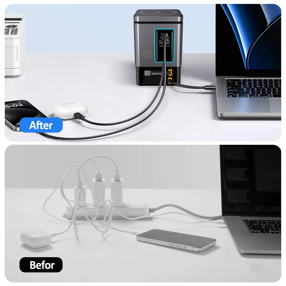 - 6-in-1 Schnellladen: Lade bis zu 6 Geräte gleichzeitig! Egal ob Smartphone, Laptop, Tablet oder kabellose In-Ear-Kopfhörer – jeder kommt an die Reihe.